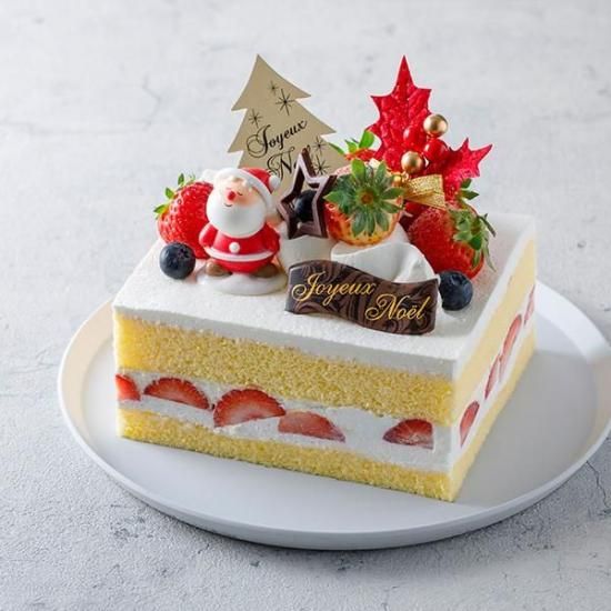 コクのある卵を使ってじっくり焼き上げた、しっとり上品な食感のスポンジ。なかにイチゴをたっぷりサンドして、豊かなコクと風味がある純生クリームでデコレーションしました。素材にこだわり抜いた、甘さ控えめな生クリームクリスマスケーキです。